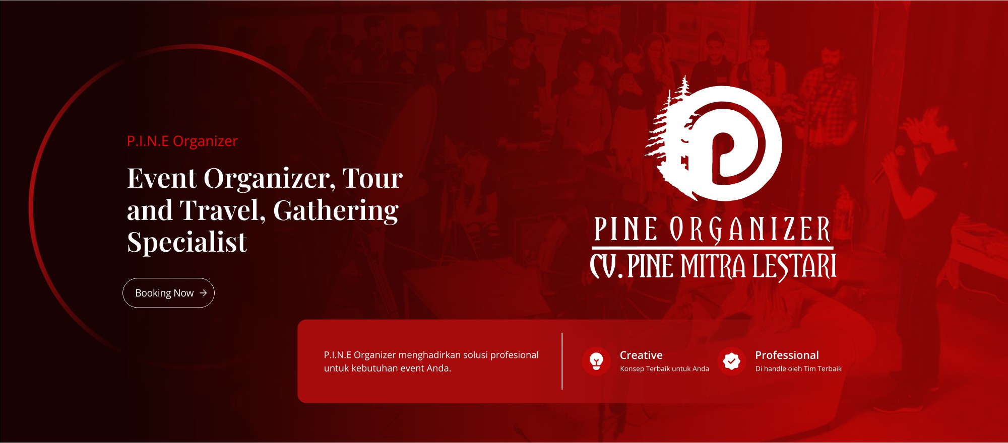 Menyadari hal itu P.I.N.E ORGANIZER hadir dengan membawa nuansa yang mungkin akan berbeda dengan EVENT ORGANIZER yang sudah ada. P.I.N.E ORGANIZER didukung personal-personal di dalam team yang selalu bekerja total dan berpengalaman serta handal dan profesional di bidangnya.